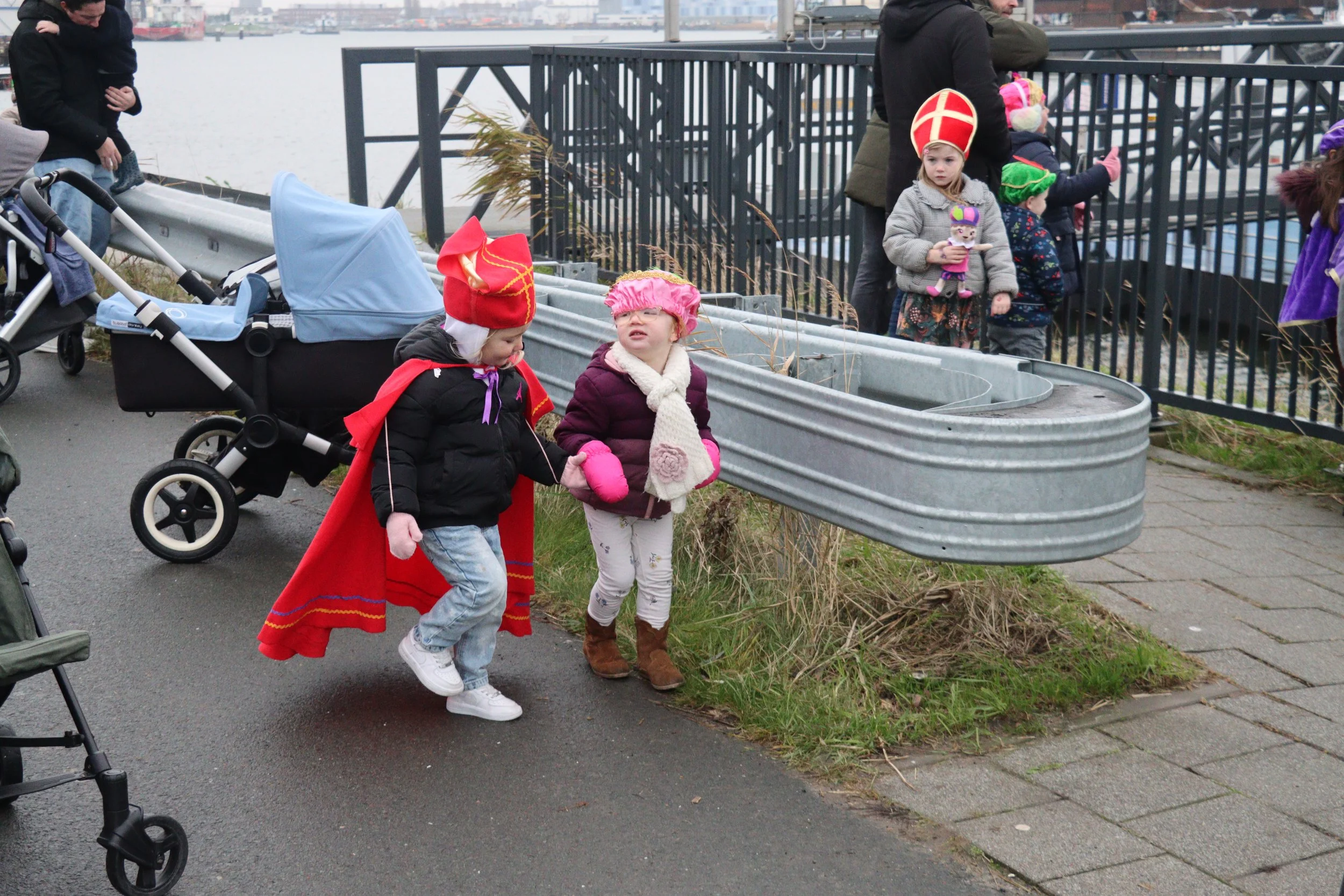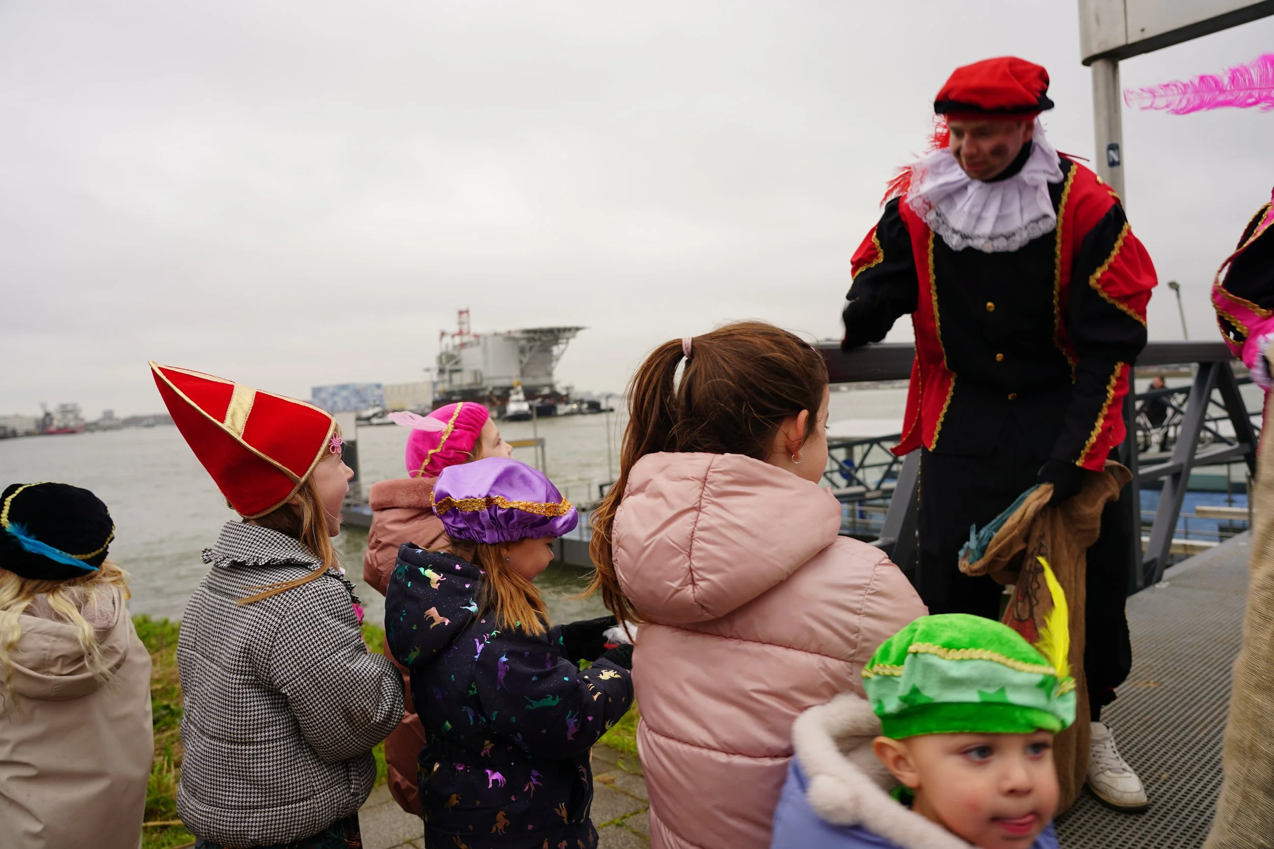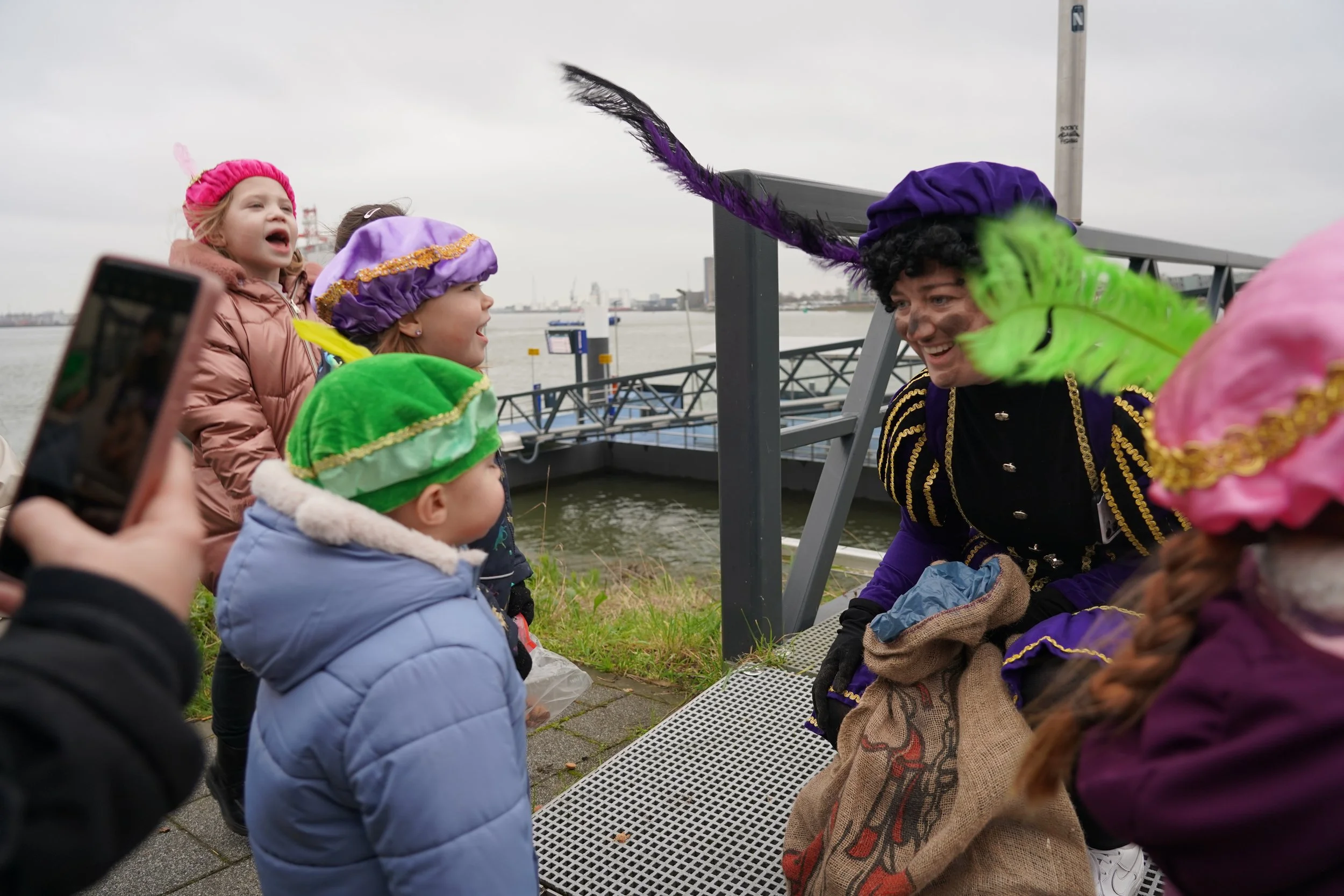 Na een warm welkom op de kade trok het gezelschap richting de speeltuin. Daar barstte het feest los met allerlei leuke activiteiten. Kinderen konden springen op de airtrampoline, sjoelen, luisteren naar verhalen in het voorleeshoekje en hun Piet-skills oefenen op een sportief parcours. De Pieten deden vrolijk mee en zorgden voor volop gezelligheid.