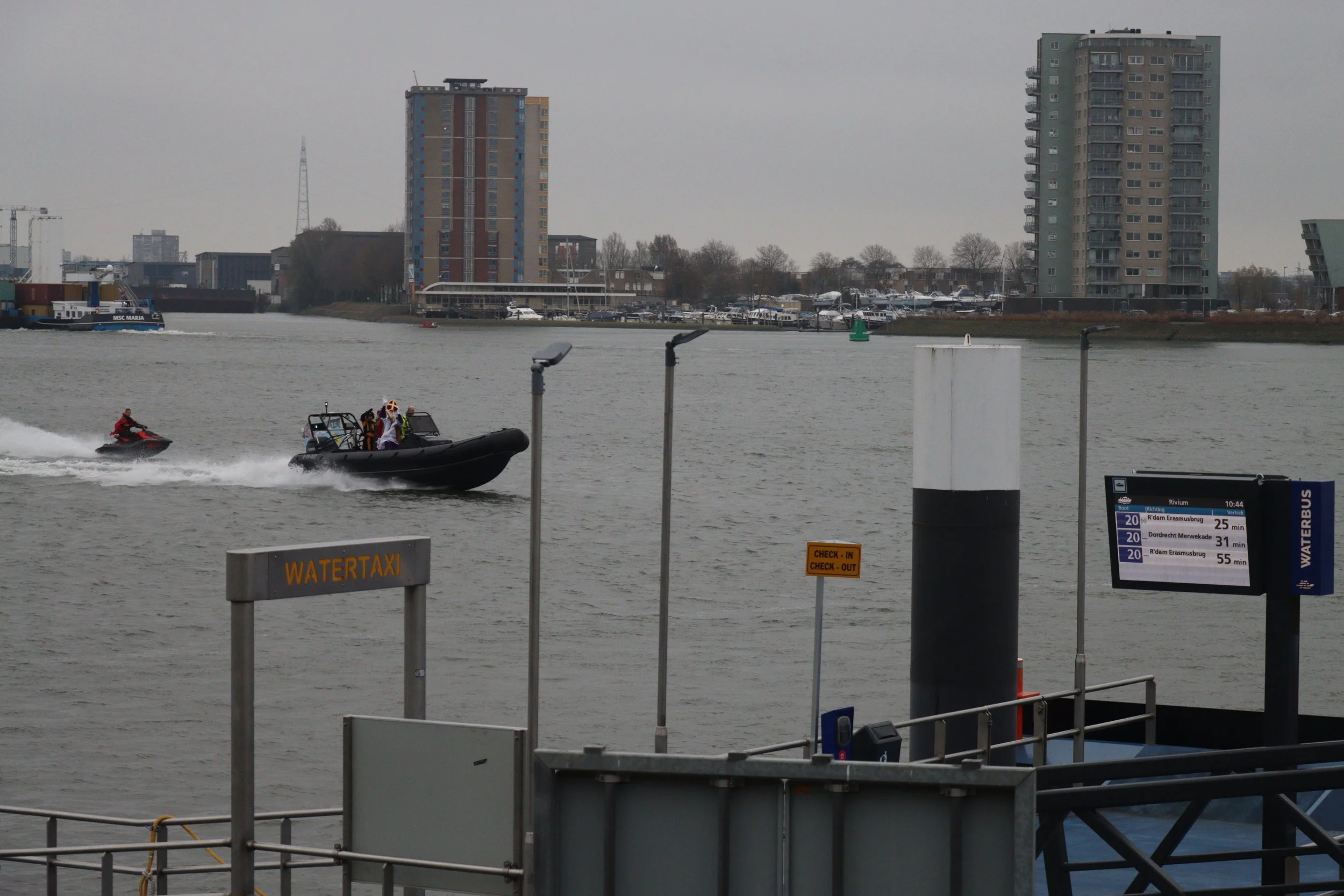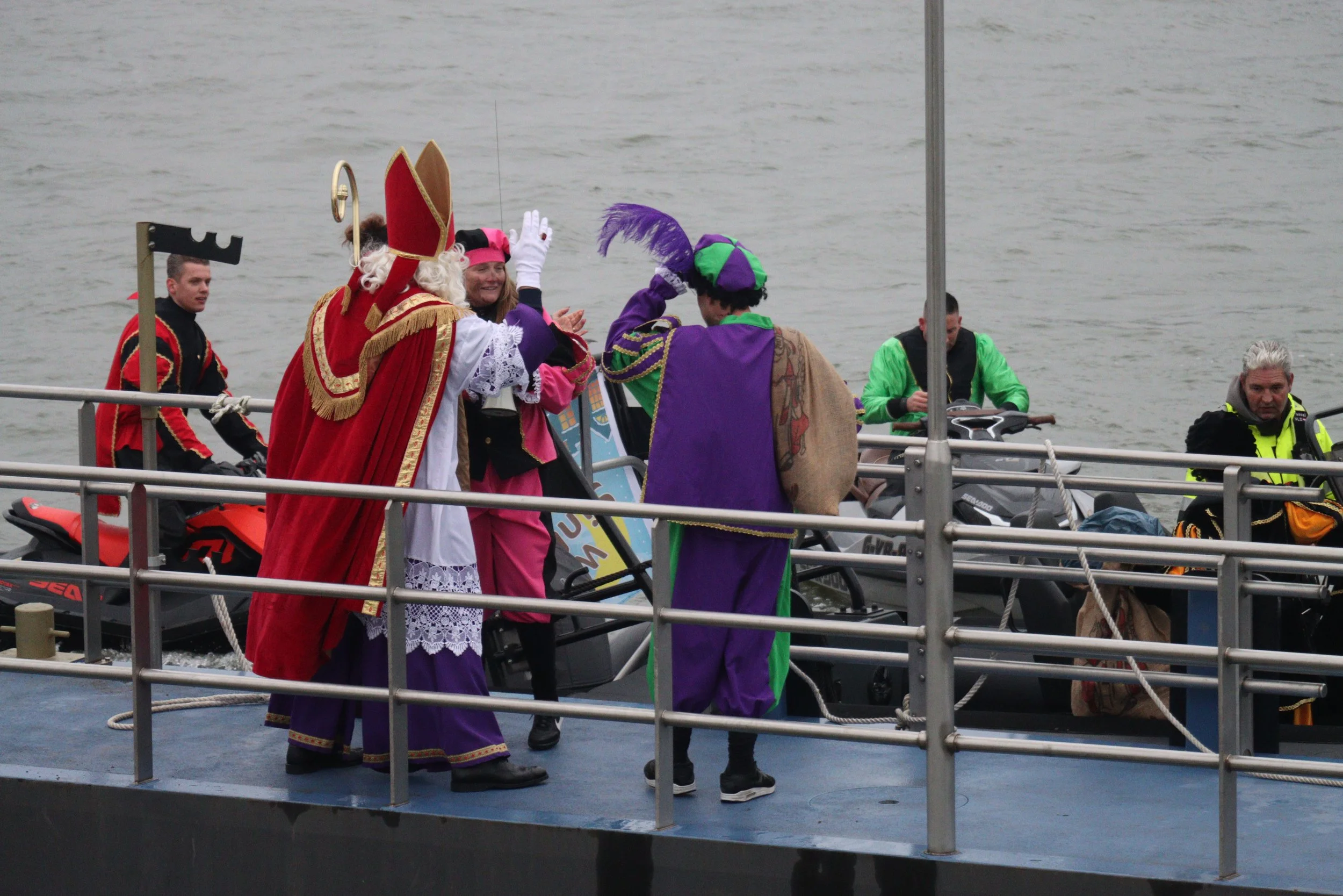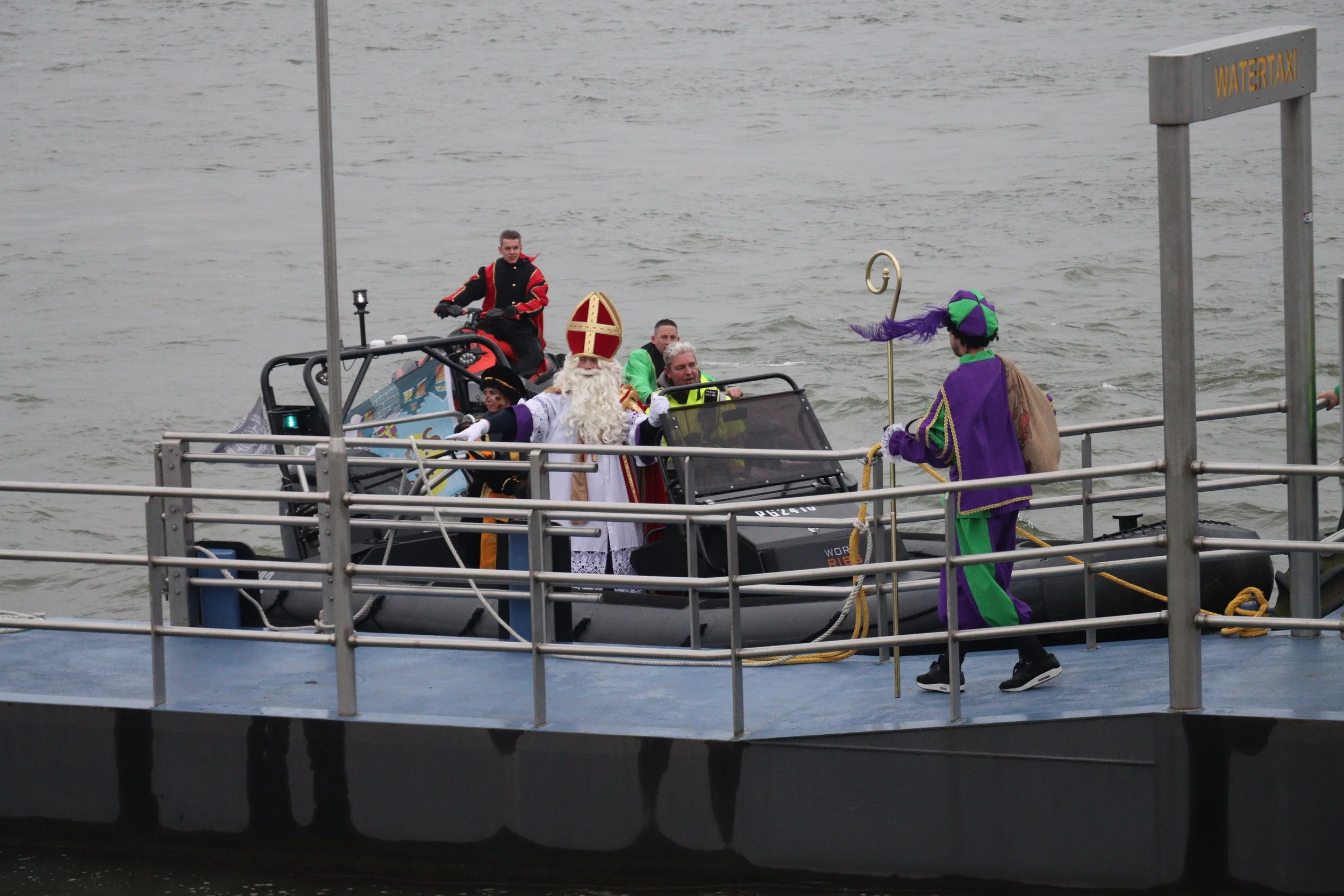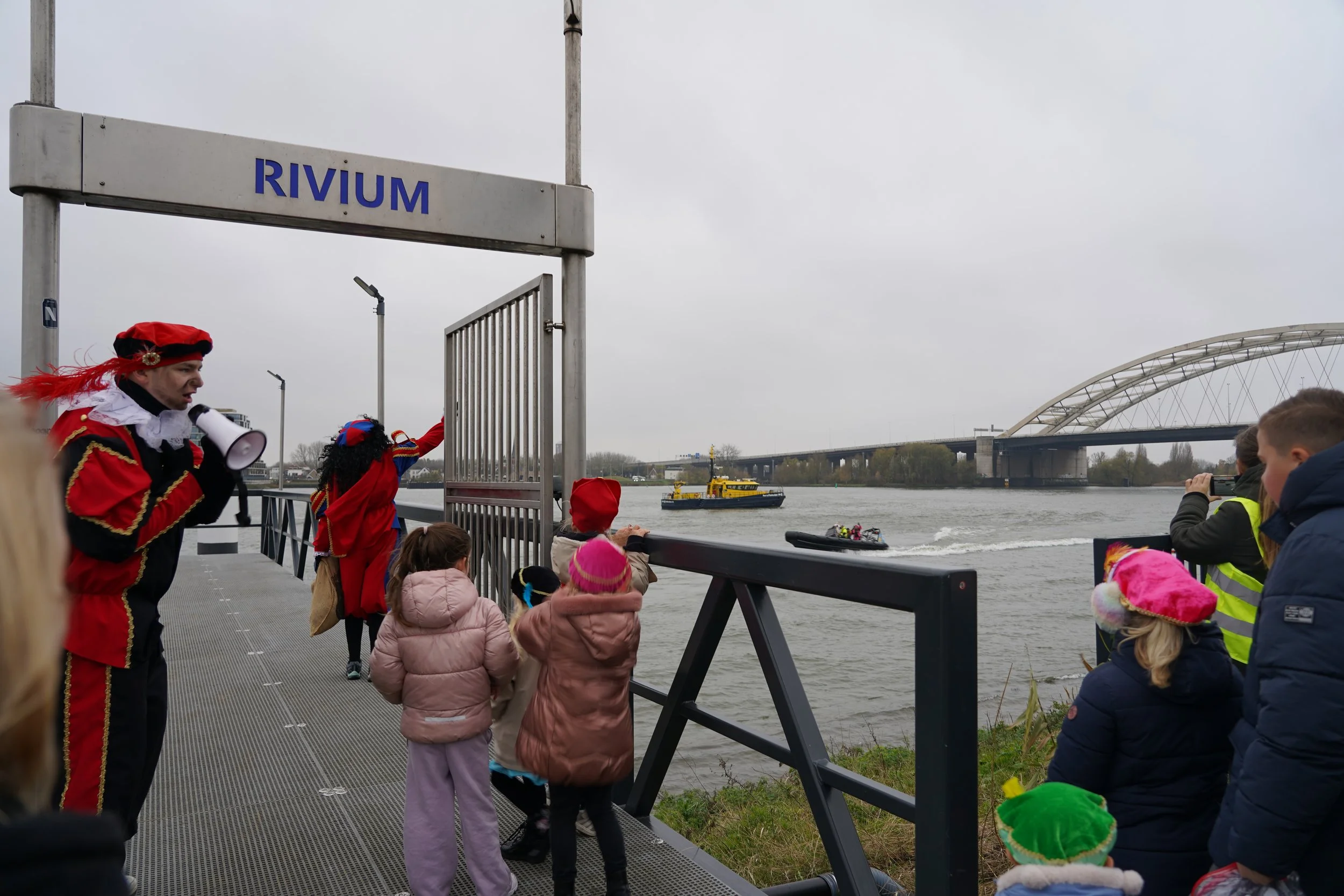 Op zaterdag 29 november 2025 werd Kralingseveer verrast door een bijzonder bezoek van Sinterklaas. Rond half elf meerde de Waterbus aan bij de Schaardijk, waar de Pieten alvast enthousiast aan wal sprongen. Maar waar was de Sint? Die liet zich niet veel later spectaculair zien: in een supersnelle RIB-boot, begeleid door twee Pieten op waterscooters. Dat zorgde meteen voor grote ogen en veel enthousiasme bij kinderen en ouders.